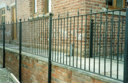 flat top plain fencing with square safety spike on every other bar 3 foot high 30 x 10mm or 30mm box frame with 12mm infill at 100mm gaps. all other sizes and weights available. price varies depending on quantity