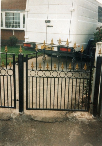 3 foot x 3 foot single gate with standard spikes,circles and cages. 30 mm box section frame and 30 x 10mm bow with 12 mm infill. other sizes and weights available