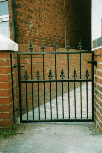 3 foot x 3 foot flat top gate with standard spikes on top and middle bar. 25 mm frame with 12 mm infill. other sizes and weights available.