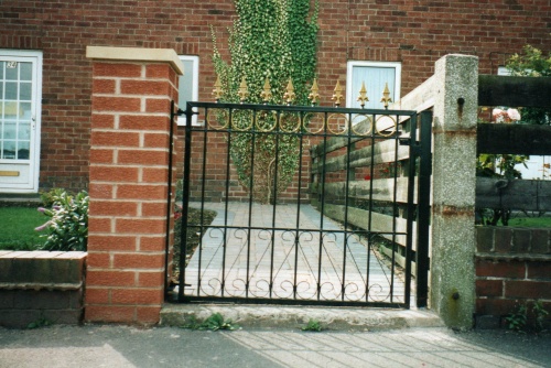 3 foot x 3 foot ftat top gate with standard spikes on top bar circles and scrolls. 30 mm frame with 12 mm infill. other sizes and weights available.