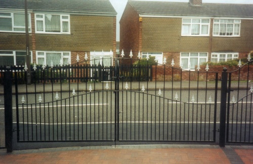 8 foot x 3 to 4 foot gates with standard 6 inch spikes with double bow. 30 mm box section frame and 30 x 10mm bows with 12 mm infill. other sizes and weights available.
